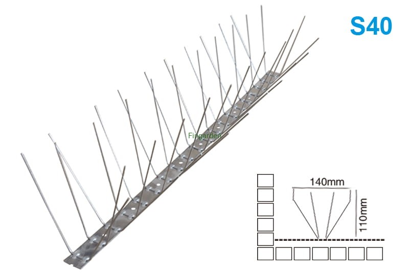 Cały metalowy moduł z kolcami przeciw ptakom S40 50cm / 40 kolcy